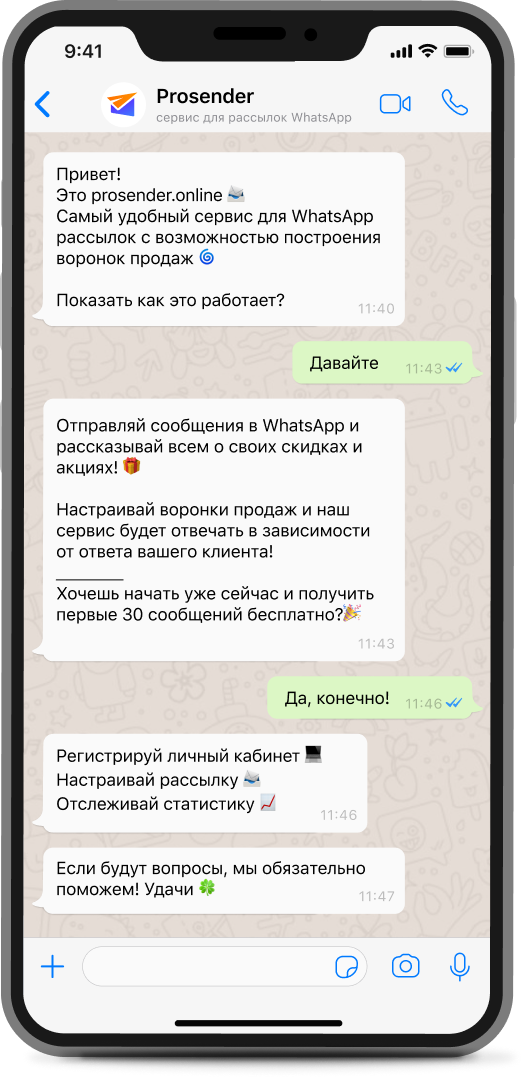 ProSender работает строго в рамках ФЗ №152 "О персональных данных" и ФЗ № 38 "О рекламе". Поэтому, вы можете осуществлять рассылку только на номера телефона тех клиентов, которые дали свое информированное согласие на получение от вас рекламных и информационных сообщений. Также, мы напоминаем, что вы несете полную ответственность за содержание отправляемых вами сообщений.