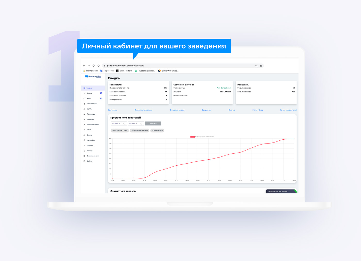 Мы поможем вам собирать все заказы в вашем личном кабинете. Это просто, попробуйте возможности DostavkinBot прямо сейчас